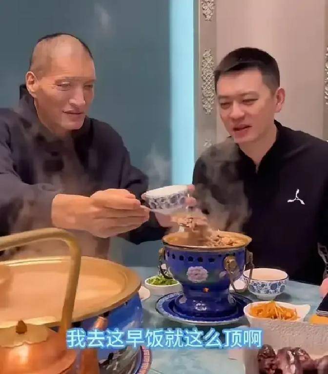 CBA杯期间,巴特尔和刚卸任辽宁男篮主教练的杨鸣温馨相聚。为了欢迎朋友,巴特尔特意请杨鸣去吃内蒙古特色早餐。餐桌上的美食很丰盛,最显眼的是几种不同做法的羊肉,足足有四种菜式,让杨鸣特别惊叹。面对这样独特的美食文化,他忍不住大力称赞,还亲切地喊巴特尔“八哥”。巴特尔则幽默回应,说起两人年轻时的小故事,把杨鸣逗得哈哈大笑。